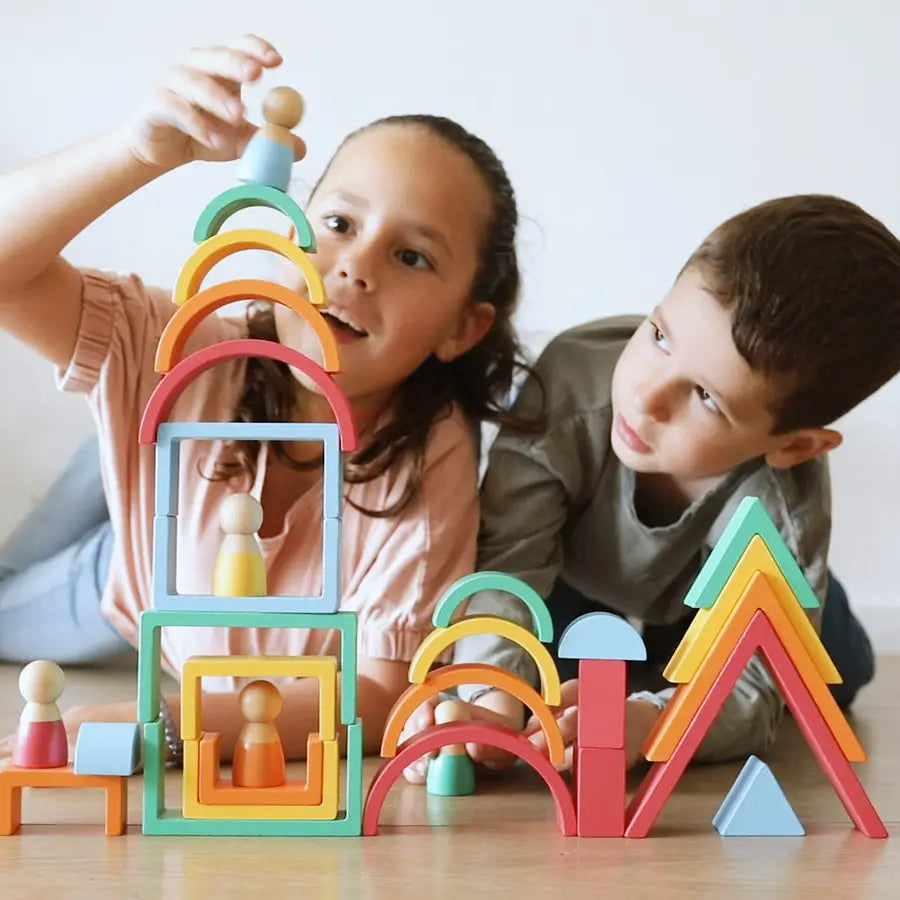 Stack, sort, and imagine with KIPOD Rainbow Blocks—a colorful wooden play set designed to inspire creativity and open-ended play. This beautiful set includes 25 vibrant blocks in various shapes, 5 charming wooden characters, and a sturdy wooden tray for easy storage and display. Perfect for building towers, creating scenes, or mixing colors and shapes, Rainbow Blocks support the development of fine motor skills, spatial awareness, and storytelling. Crafted from high-quality wood and designed with care, this set offers endless possibilities for hands-on exploration.