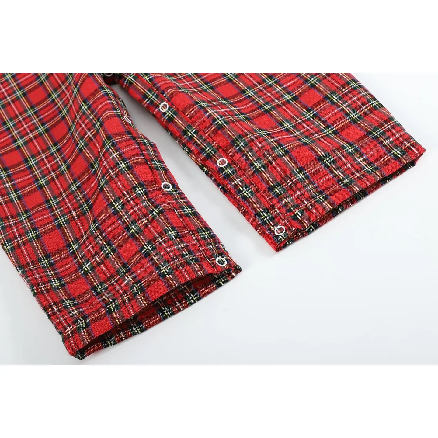 Merry and Bright! These Lil Cactus red Christmas plaid overalls are made in 100% soft cotton. They feature cute Santa and his sleigh embroidery, smocking, and snap enclosures for easy changing. The perfect outfit for your little guy and all of your winter fun. From pictures with Santa to the big Holiday meal; no matter the occasion he will be looking picture-perfect!